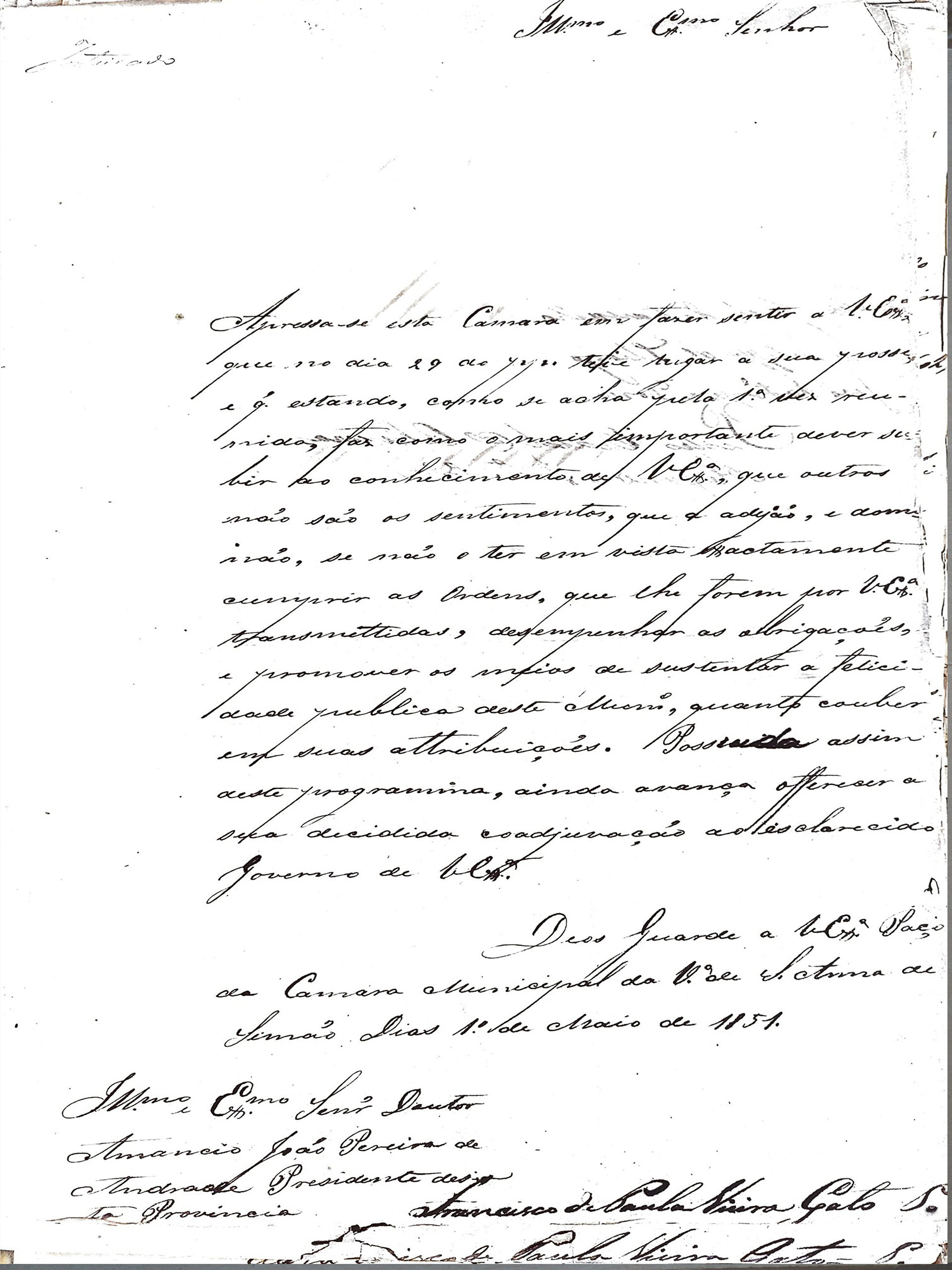1851.05.01 Ofício da Câmara informando sua posse e instalação da casa