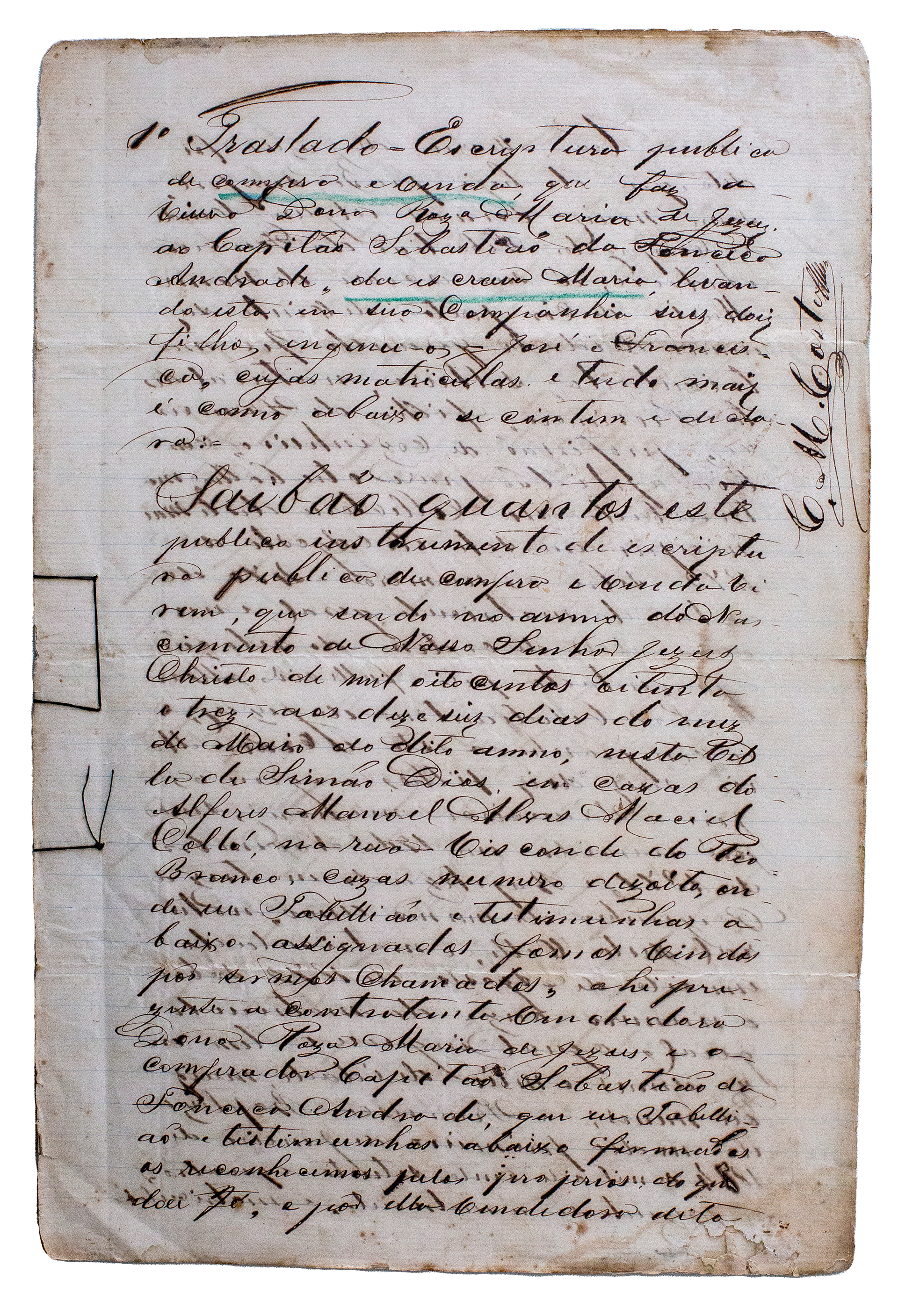 ESCRITURA DE COMPRA DE ESCRAVOS PELO BARÃO DE SANTA ROSA