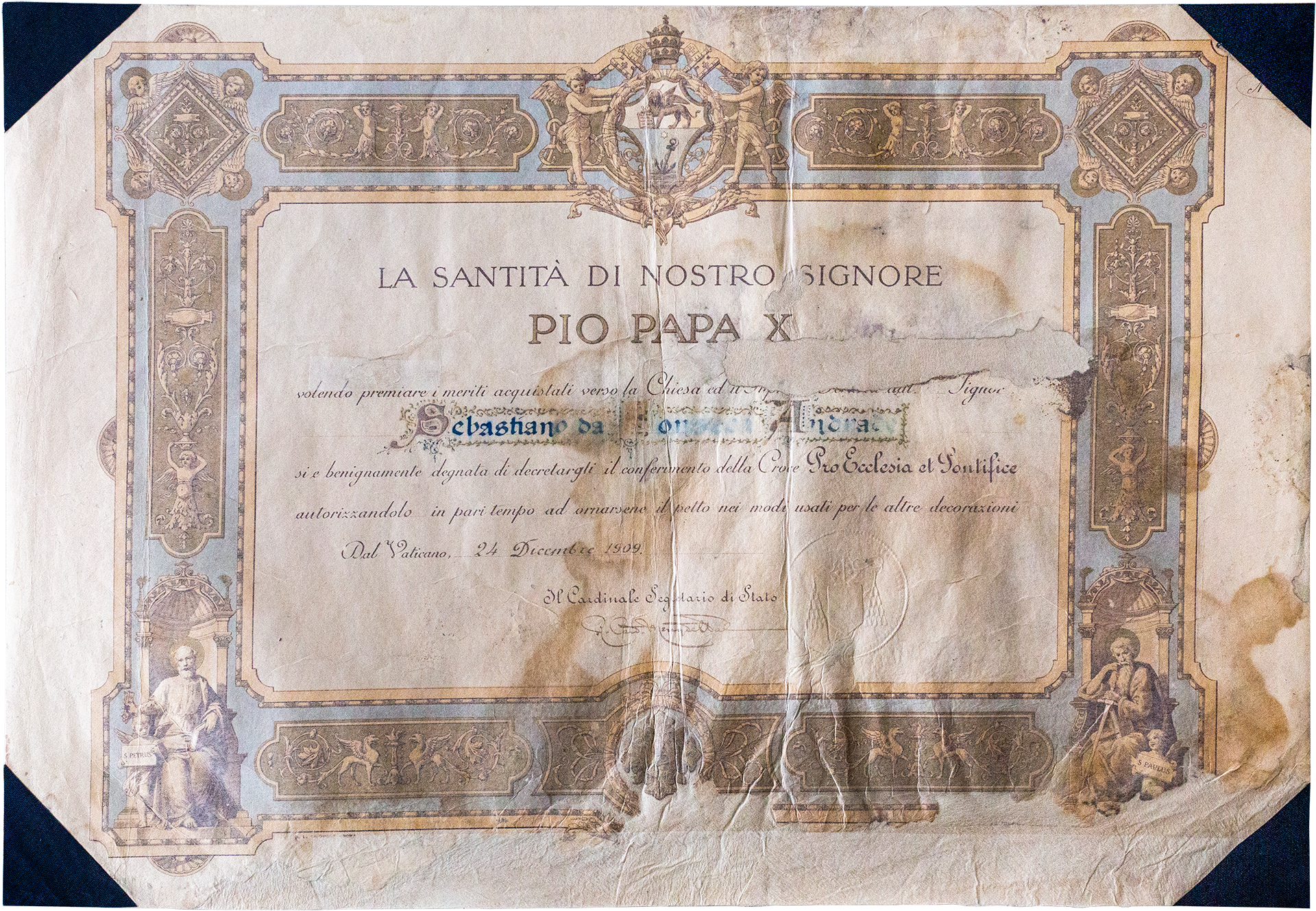 TÍTULO DE INDULGÊNCIA DO PAPA PIO X PARA O BARÃO DE SANTA ROSA