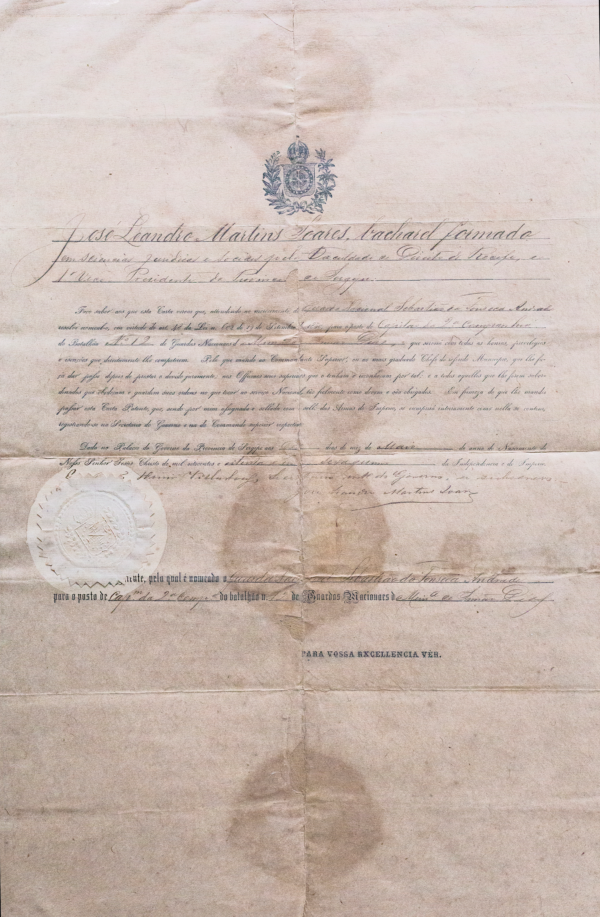 TÍTULO DE CAPITÃO DA SEGUNDA COMPANHIA DO BARÃO DE SANTA ROSA