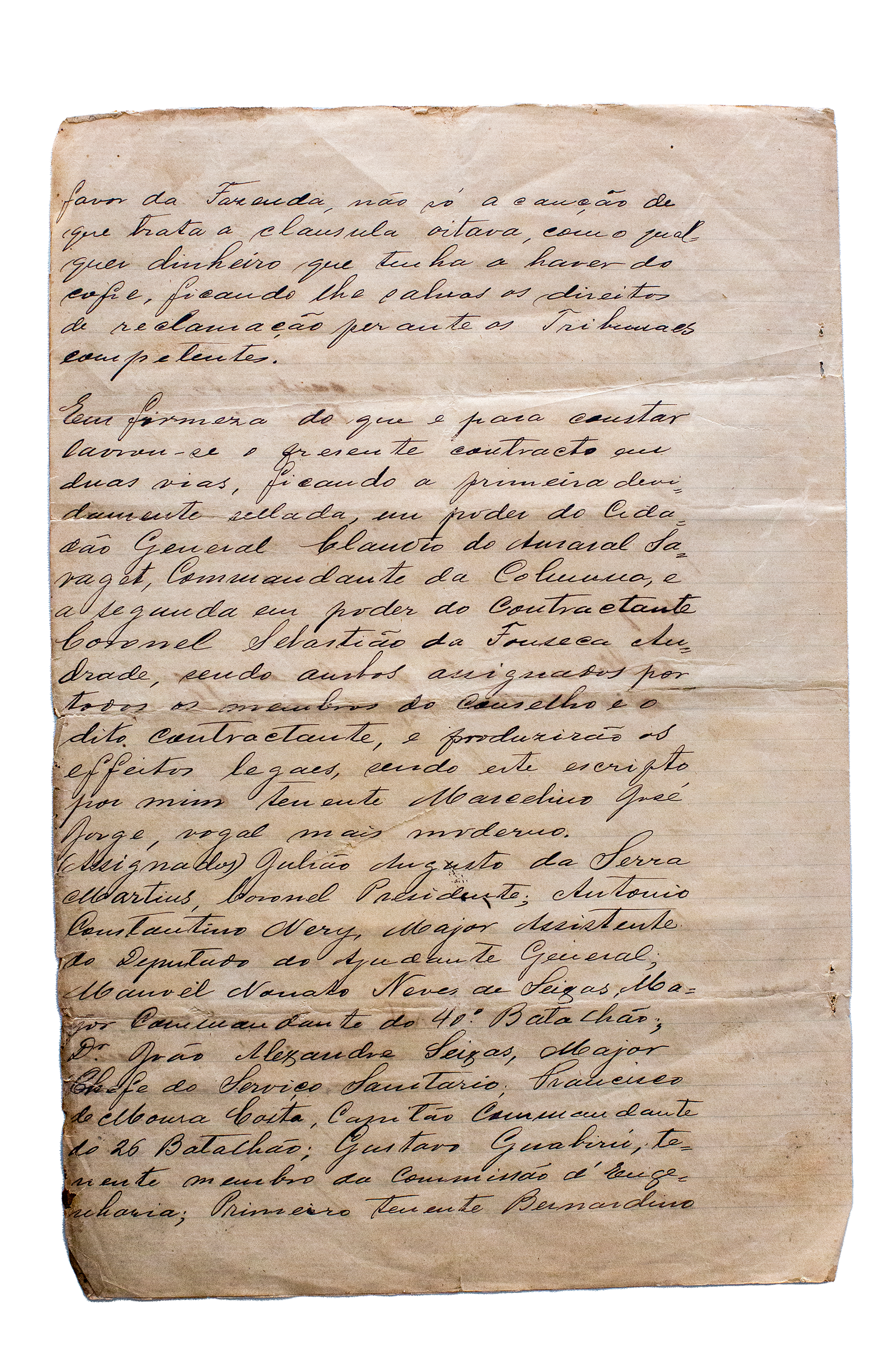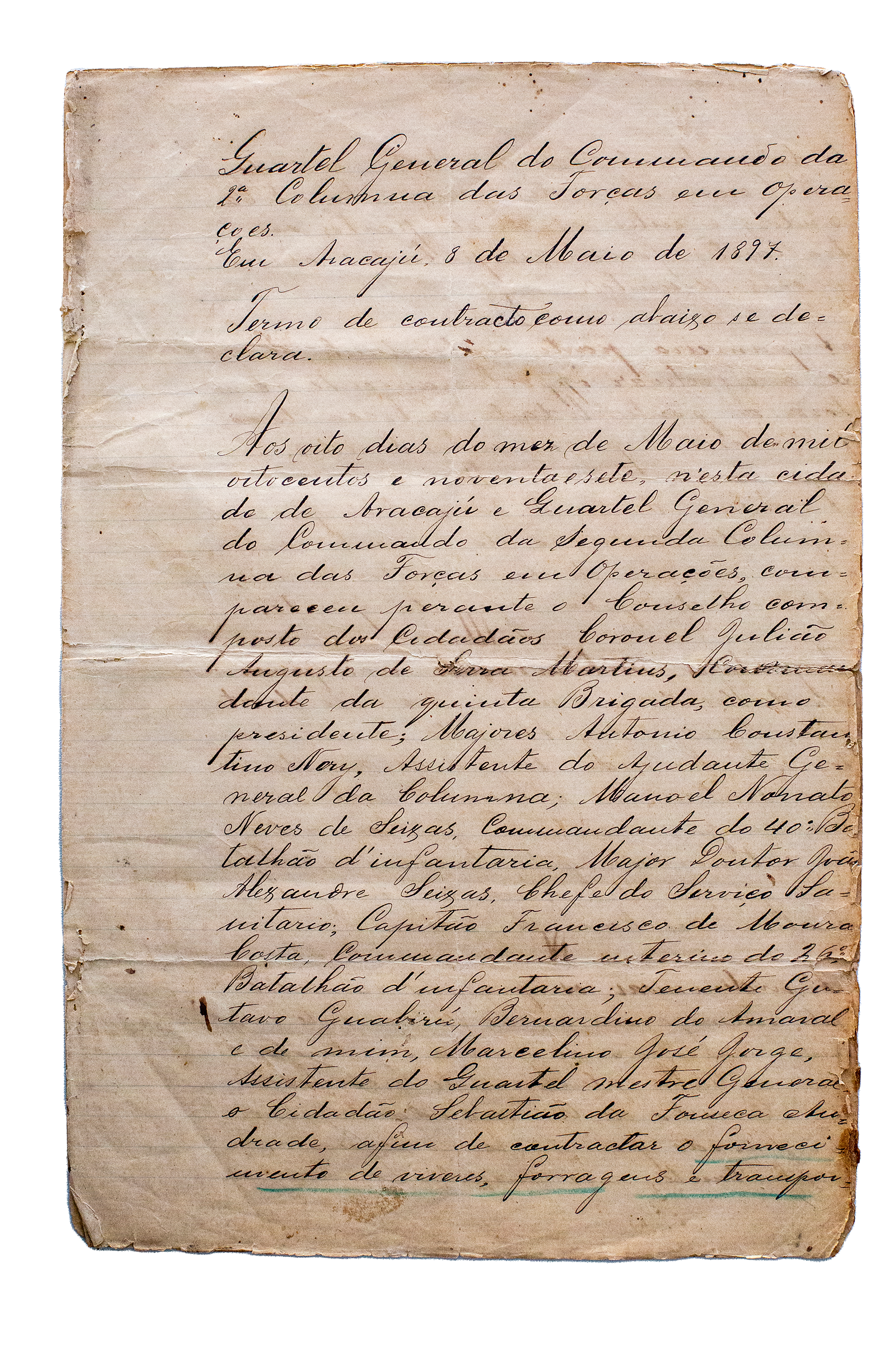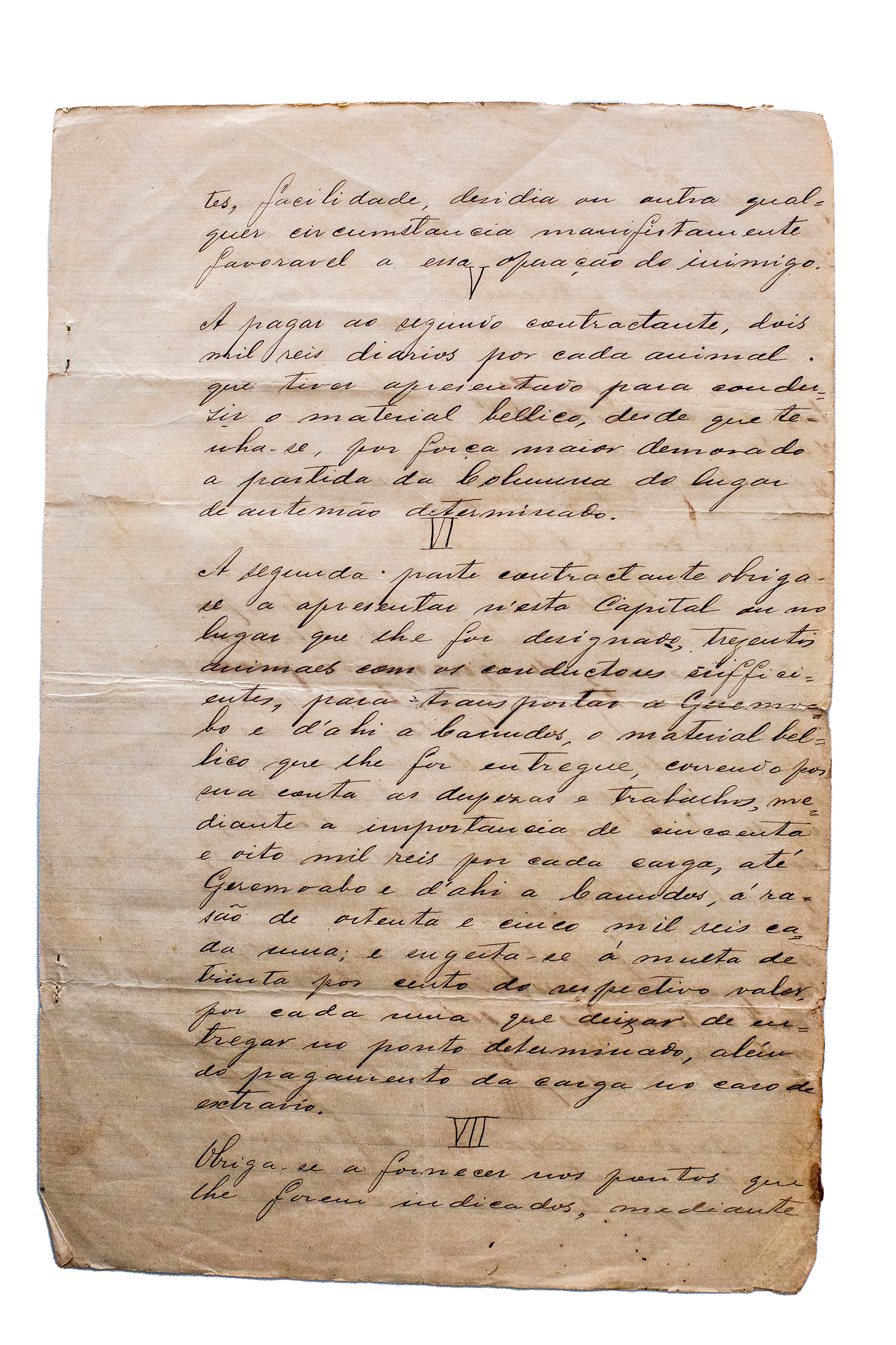 CONTRATO DE VENDA DE INSUMOS E TRANSPORTE DE MATERIAL BÉLICO PARA GUERRA DE CANUDOS - FEITO PELO BARÃO DE SANTA ROSA