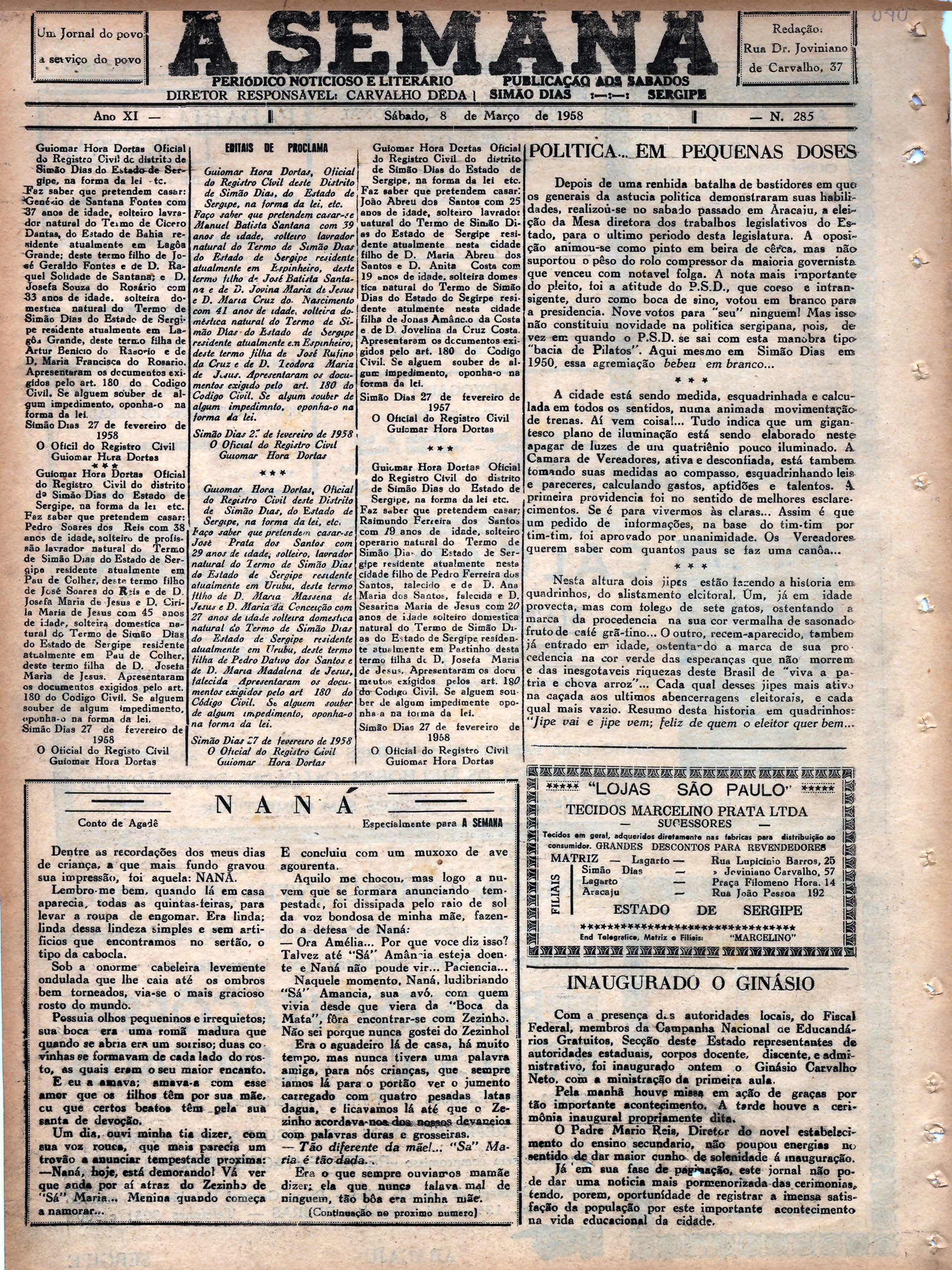INAUGURAÇÃO DO GINÁSIO CARVALHO NETO - Pág. 04 - Jornal A Semana - Ed. 285 p. 2 08.03.58