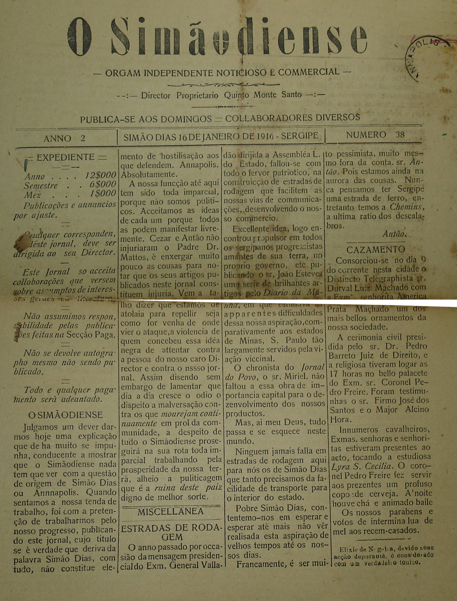 Jornal O Simaodiense 1916.01.16 p. 1